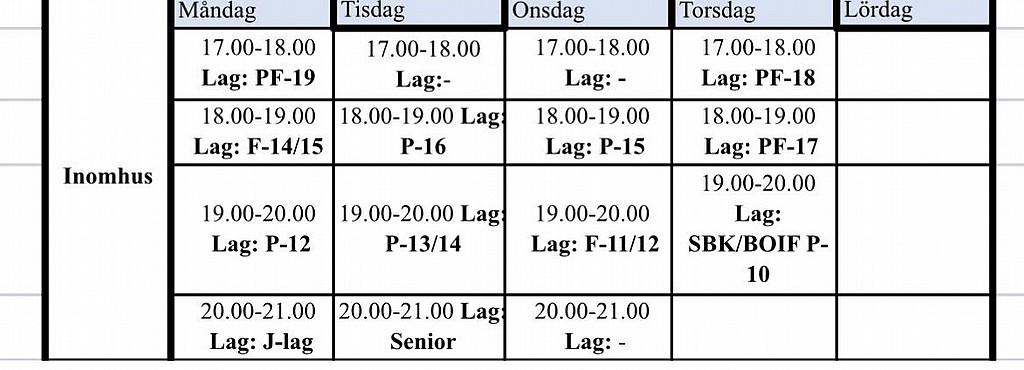 Inomhus tider +